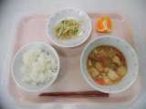 [献立] チキンライス 牛乳 白いんげん豆のポタージュ ほうれん草サラダ [...