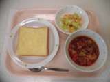 [献立] ガーリックトースト 牛乳 ポークビーンズ コーンサラダ [食材] ...