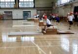 体育館での体育で、跳び箱を学習しています。いろいろな段や形に挑戦しています。
