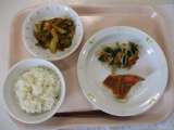 【献立】 麦ごはん 牛乳 魚の西京焼き じゃがいもの金平 野菜とわかめのからし...