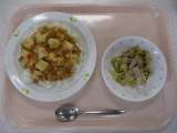 【献立】 麻婆豆腐丼 牛乳 白菜の中華サラダ 【食材】 米:山形県 にんじ...
