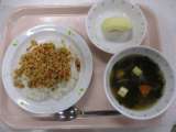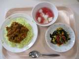 【献立】 大豆入りドライカレー 牛乳 大根とひじきのサラダ 紅白ゼリー 【食...
