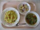 【献立】 パエリア 牛乳 ベーコンと野菜のスープ シナモンポテト 【食材】 ...
