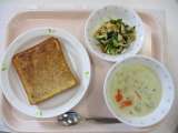 【献立】 セサミトースト 牛乳 クラムチャウダー 海藻サラダ 【食材】 じ...