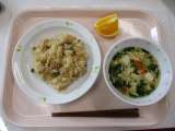 【献立】 中華おこわ 牛乳 にらたまスープ くだもの(ネーブル) 【食材】 ...