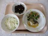 【献立】 ごはん 牛乳 魚のみそ煮風 ひじきの煮つけ 野菜のからしじょううゆか...