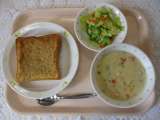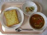 【献立】 セサミトースト 牛乳 サーモンチャウダー 野菜のドレッシングかけ ...