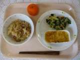 【献立】 ツナの三色丼 牛乳 さつま汁 くだもの(ぽんかん) 【食材】 米...