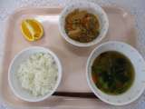 【献立】 チキンライス 牛乳 ひよこ豆の田舎風スープ 豆乳ココアゼリー 【食...