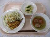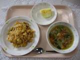 【献立】 卵入りキムチチャーハン 牛乳 ビーフンスープ くだもの(りんご) ...