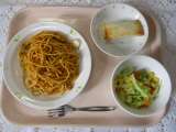 【献立】 シーフードスパゲッティ 牛乳 コーンサラダ さつまいもパイ 【食...