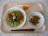 【献立】 五目あんかけそぼ 牛乳 大豆とじゃこの甘辛揚げ くだもの(はるみ) ...
