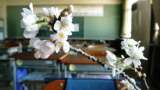 校庭にある梅がようやく見ごろを迎えています。本来なら2月の花ですが1か月ずれて...