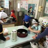 ガスコンロでお湯を沸かし、お茶を飲みました。 初めての実習です。みんな真剣...