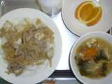 豚丼 牛乳 味噌汁 清見オレンジ ☆今日は今が旬の清見オレンジが出ました。とて...