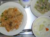 チキンライス 牛乳 ポテトスープ ツナサラダ ☆給食のチキンライスは、トマトジ...