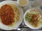 ミートソーススパゲッティー 牛乳 ごぼうチップサラダ りんごゼリー ☆今日のサ...