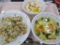 チャーハン・たまごとわかめのスープ・杏仁豆腐・牛乳