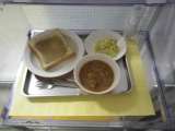 (献立) ・セサミトースト ・牛乳 ・トマトシチュー ・コーンサラダ (主...