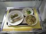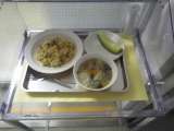 (献立) ・ごはん ・牛乳 ・四川豆腐 ・塩ナムル ・くだもの(清見オレンジ...