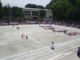 ボールが落ちないように最後までがんばります。(2年) 真夏のような暑さの中、台風...