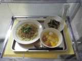 (献立) ・ジャージャー麺 ・牛乳 ・わかめサラダ ・紅白フルーツポンチ ...