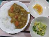 今日の献立は、カレーライス・牛乳・コーン入りフレンチサラダ・甘夏です。