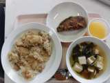 今日の献立は、たけのこご飯・牛乳・ししゃもの磯辺揚げ・豆腐汁でした。