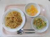 [献立] スパゲッティボンゴレ 牛乳 ポテト入りフレンチサラダ フルーツポンチ...