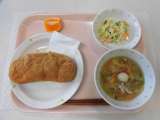 [献立] きなこ揚げパン 牛乳 白菜と春雨のスープ 野菜サラダ くだもの(セミ...