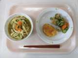 [献立] カレーうどん 牛乳 じゃがいももち シャキシャキ野菜 [食材] ...