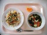 [献立] ビビンバ 牛乳 わかめスープ くだもの(清見オレンジ) [食材]...