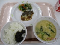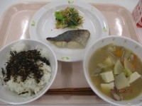 ごはん・さわらの塩こうじやき・ごまあえ・豚汁・手作りひじきふりかけ・牛乳