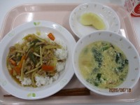 スタミナ丼・にらたまスープ・りんご・牛乳