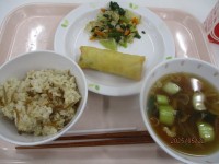 じゃこごはん・ポテサラ春巻き・きゃべつのあっさりあえ・スープ・牛乳