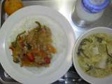 カレーピラフ 牛乳 レタススープ 大豆とコーンのフリッター ☆今日のフリッター...