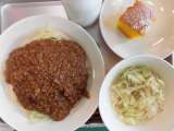 ジャージャー麺 牛乳 野菜のすりごま和え かぼちゃのケーキ ☆今日は今年初めて...