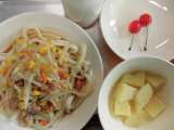 冷やしごまだれサラダうどん 牛乳 じゃがいものバター焼き さくらんぼ ☆今日は...