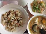 ナシゴレン 牛乳 冬瓜のスープ イカのチリソースがけ ☆今日のイカのチリソース...