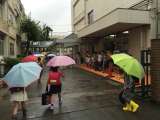 雨の朝です。 1・6年生のあいさつ当番とボランティアの5年生ががんばってい...