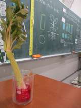 理科では、「植物の水の通り道」の学習をしています。 今日は、セロリに色水を吸わせ...