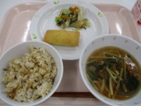 じゃこごはん・ポテサラ春巻き・きゃべつのあっさりあえ・春雨スープ・牛乳