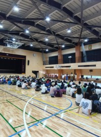 宿での避難訓練を行いました。その後、食事会場へ。夕食では、たくさんの人がおかわり...