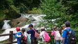湯滝を、スタートします。 様々なワークをしながら、自然を満喫しています。