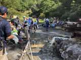 三本杉の広場で昼食をとりました。 お弁当とスポーツドリンクで元気回復した6年生で...