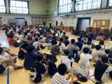 生活班のメンバーで協力をし合い、 朝会前の支度を進めています。