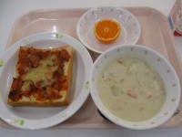 ごはん・さけのちゃんちゃんやき・もやしのごま風味・五目汁・牛乳