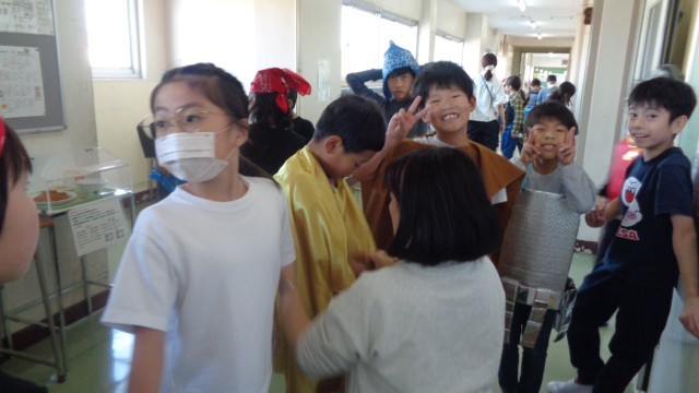 いよいよ来週に迫った学芸会。練習も大詰めです。自分たちで作った大道具をたくさん使って、楽しい劇に仕上げようと頑張っています。衣装合わせでは、役になり切って大喜びでした!