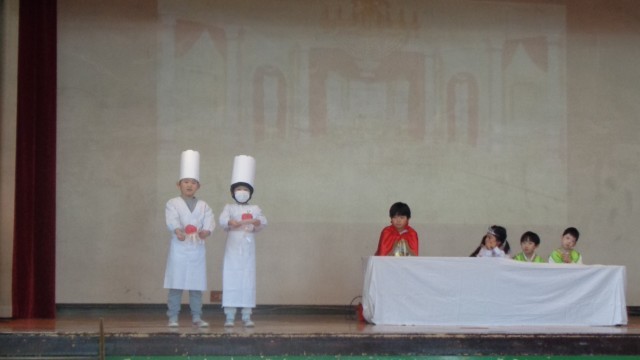 仲よし学級では、学芸会に向けて毎日頑張って練習をしています。7日金曜日には初めて衣装をつけて、舞台練習を行いました。子ども達は、自分の役の衣装を着て張り切って練習に取り組んでいました。