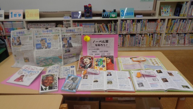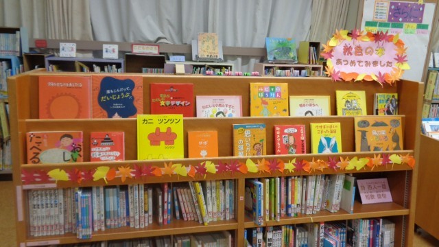 他にもノーベル賞や秋色の本のコーナーも設置しています。